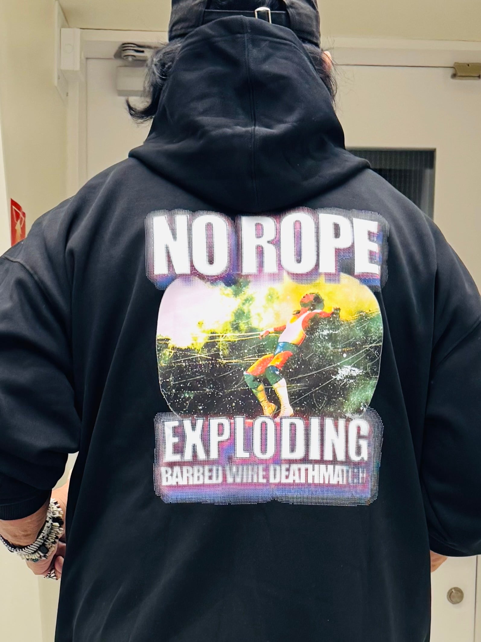今年のパーカーはノーロープ有刺鉄線電流爆破!ファンの皆様には懐かしいあの名シーンが、背面にプリントされています。